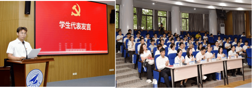2021级应用物理强基班班长范振坤作为学生代表进行发言,他表示,作为新时代大学生,我们要肩负起时代赋予我们的责任,要以革命先辈为榜样,将个人梦想与国家发展紧密相连,传承革命先辈的优秀品质,将延安精神转化为学习动力,在物理学的探索中勇攀科学高峰。