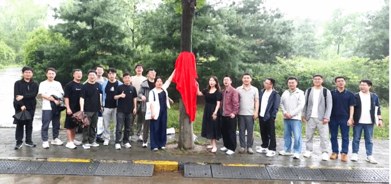 下午,雨仍在下,理学院大楼前举行了简朴庄重的捐赠仪式。当牌匾悬挂在楼前大树上时,雨水顺着牌面流淌,仿佛岁月的印记在此定格。校友们冒雨见证这一时刻,裤脚虽被溅湿,却浇不灭对母校的拳拳之心。