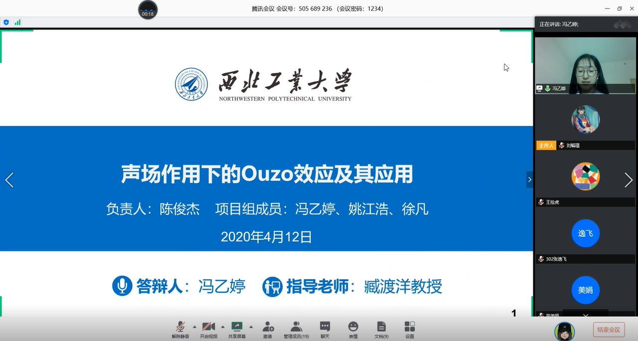的8位本科生同学:党润泽、冯乙婷、刘晨龙、张逸飞、王文璨、王文睿、赵梅梅、朱龙飞作为项目参与者,通过前期积极准备,从项目背景、执行情况、相关总结及项目创新点、经费执行情况等方面为我们展现了相关项目所获成果。会议答辩期间剧情