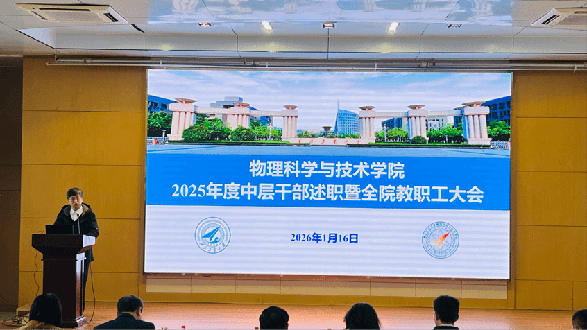 在学院楼报告厅召开2025年度中层干部述职暨全院教职工大会。魏炳波院士、学院党政领导班子及学院全体教职工参加了会议。会议由学院党委书记晁小荣主持。