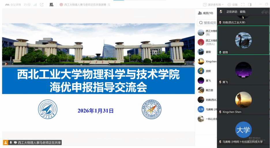 召开2026年海外人才项目线上申报指导交流会。学院院长翟薇、海外人才项目入选者刘甫教授、沈星辰教授、办公室主任马晓娜,以及7位来自美国、加拿大、沙特阿拉伯、以色列等海外学者线上参会。会议由翟薇院长主持。