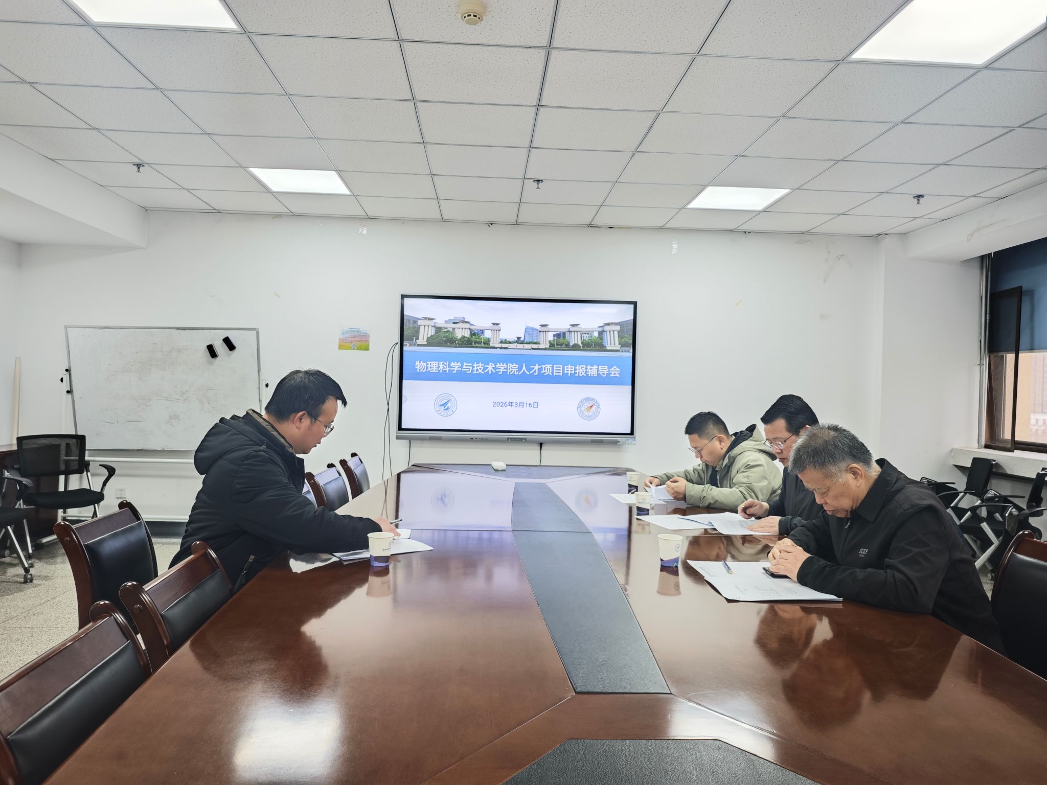 在勇字楼701、702会议室组织召开2026年度人才项目申报辅导会。本次辅导会邀请航海学院陈景东教授,材料学院刘峰教授、李晓强教授,电子信息学院张洵颖教授,自动化学院史忠科教授,以及本院王建元教授担任辅导专家,为学院教师的申报材料开展精准指导。会议由翟薇院长主持。