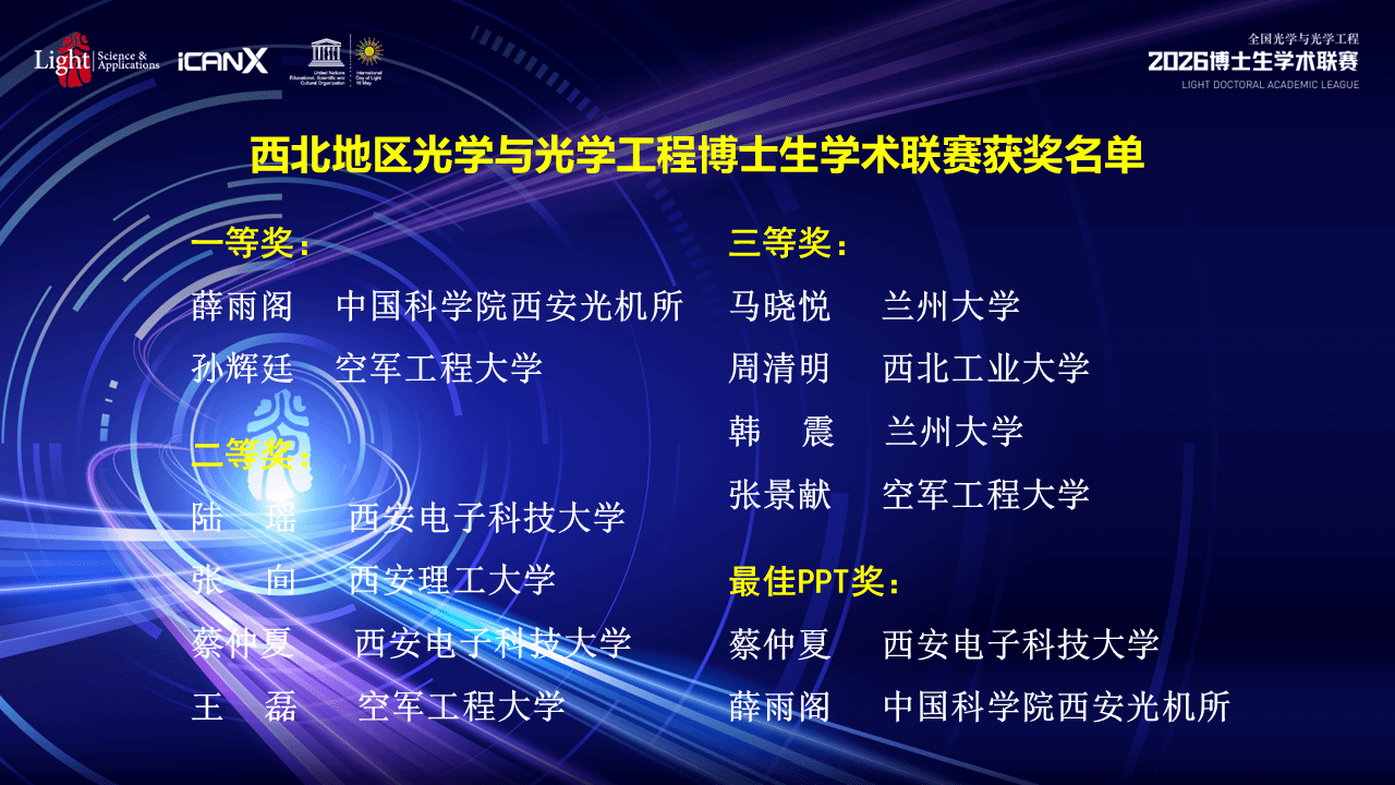 联合西安电子科技大学、中国科学院西安光机所、陕西省光学学会、甘肃省光学学会承办的2026全国光学与光学工程博士生学术联赛西北赛区比赛落下帷幕。