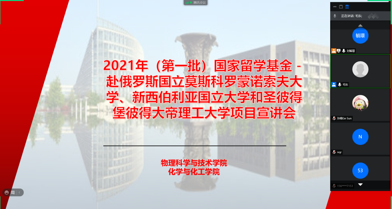 、化学与化工学院组织召开了2021年(第一批)国家留学基金-赴俄罗斯3所高校项目宣讲会。本次宣讲会与会人员有:剧情
