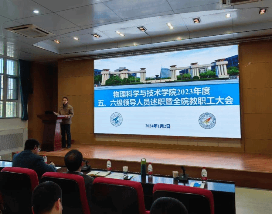 在学院楼报告厅召开2023年度五、六级领导人员述职暨全院教职工大会。魏炳波院士、学院党政领导班子及学院全体教职工参加了会议。会议由学院党委书记晁小荣主持。