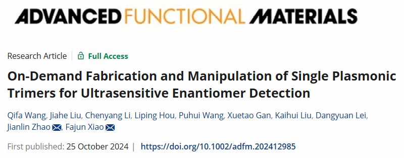 肖发俊教授、赵建林教授团队联合香港城市大学雷党愿教授、北京大学刘开辉教授在纳米科技领域顶级期刊《Advanced Functional Materials》发表了题为“On-Demand Fabrication and Manipulation of Single Plasmonic Trimers for Ultrasensitive Enantiomer Detection”的研究论文。剧情