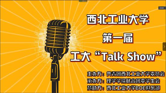 理学学院联合团委举办的“工大Talk Show”“匆匆那年”主题脱口秀决赛于6月8日晚顺利举行,并在腾讯会议平台直播。首先,衷心的感谢本次活动的赞助方----西工大BOE俱乐部为本次活动提供的大力支持!接下来,让我们一起看看决赛场上三支优秀队伍的战况吧!